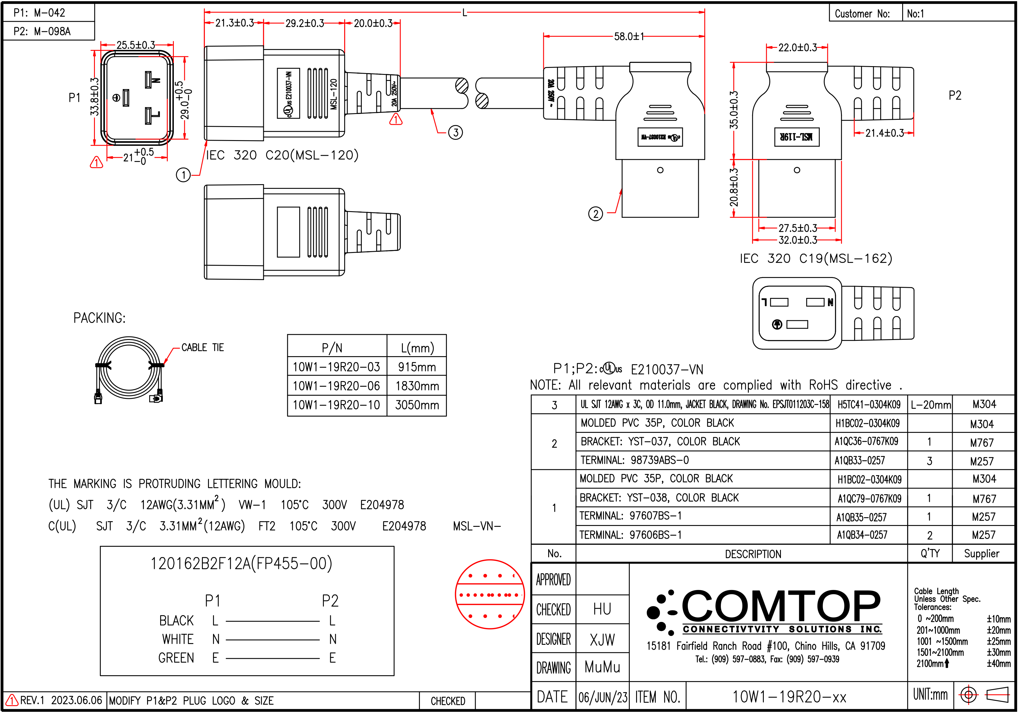 | Wire specification | UL SJT 12AWG x 3C OD 11.0mm(EPSJT011203C-158) |
