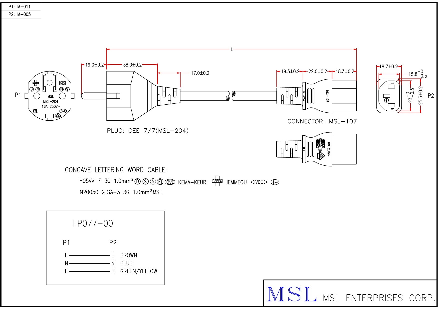 | Wire specification | H05VV-F 3G 1.0mm2 GTSA-3 OD:7.1 (EPH5V011003C-052) |