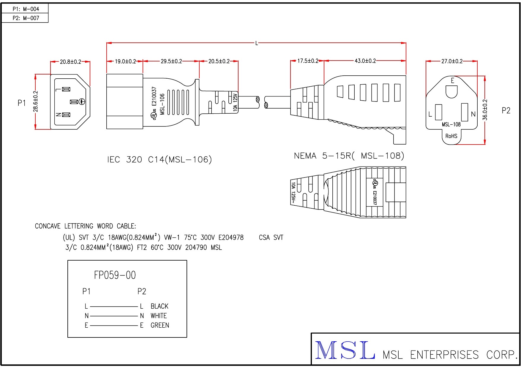 | Wire specification | ULSVT #18 3C OD6.3 (EPSVT011803C-099) |