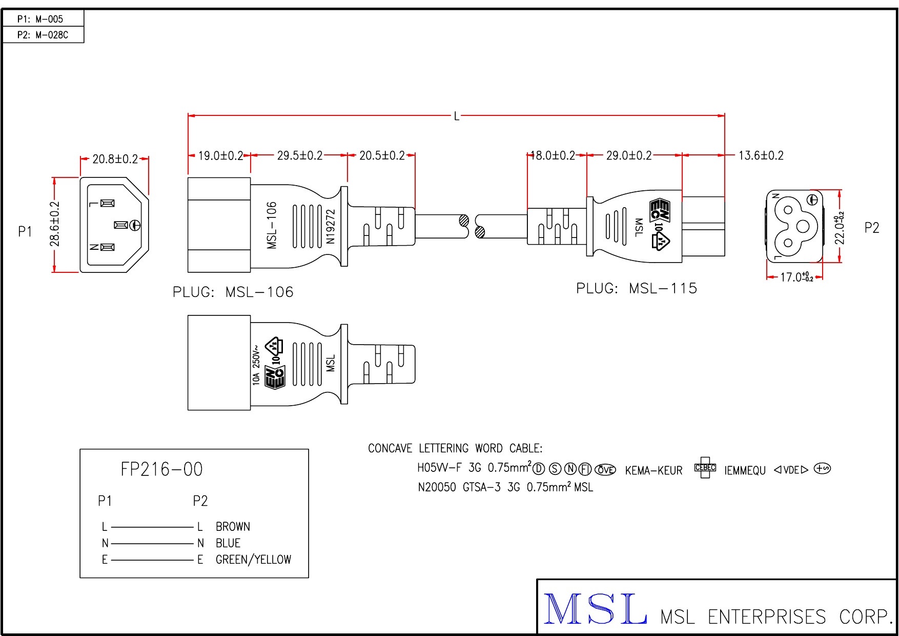 | Wire specification | H05VV-F 3G 0.75mm2 GTSA-3 OD6.8 ( EPH5V0107503C-004) |