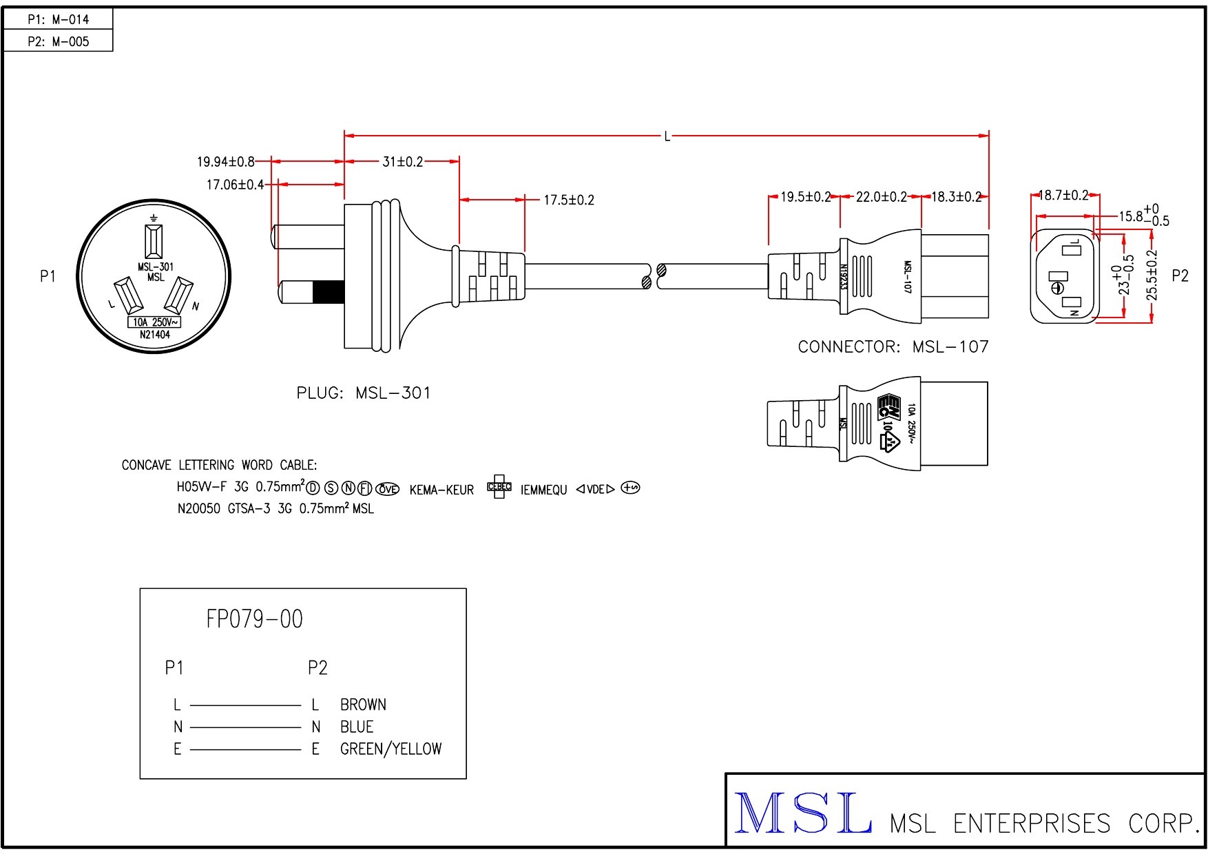 | Wire specification | H05W-F 3G 0.75mm² GTSA-3 OD 6.8mm, JACKET BLACK, DRAWING NO. EPH5V0107503C-042 |