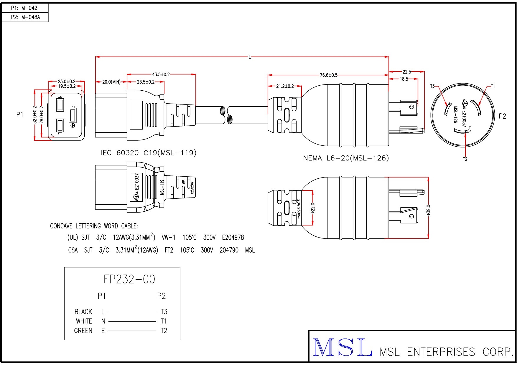 | Plug AMP / Vottage | 20A - 125/250V 20A - 250V |