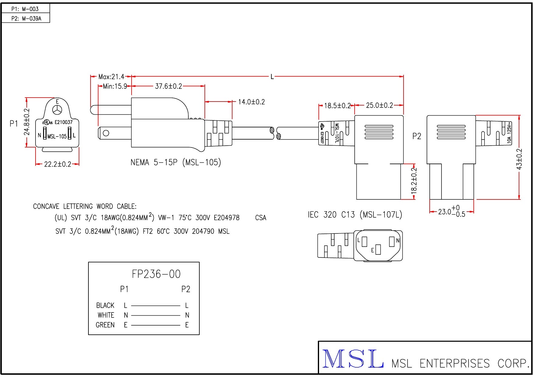 | Wire specification | ULSVT #18 3C OD6.3 (EPSVT011803C-099) |