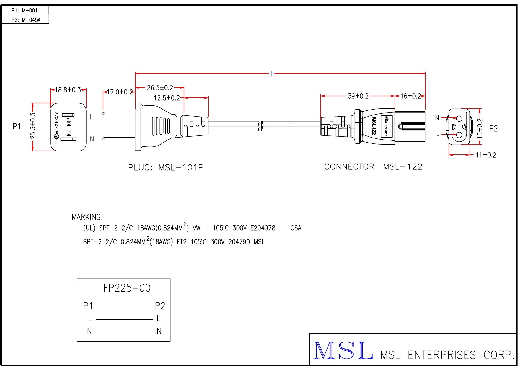 | Wire specification | ULSPT-2 #18 2C OD3.5*6.9 ( EPSPT001802C-014) |