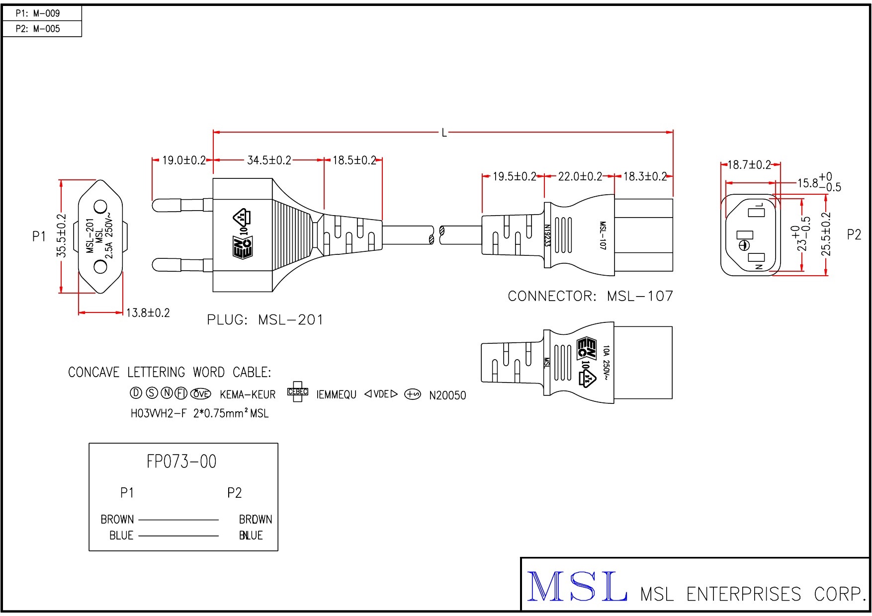 | Wire specification | H03VVH2-F 2C 0.75mm2 OD3.5*5.7 (EPH3V0107502C-001 ) |