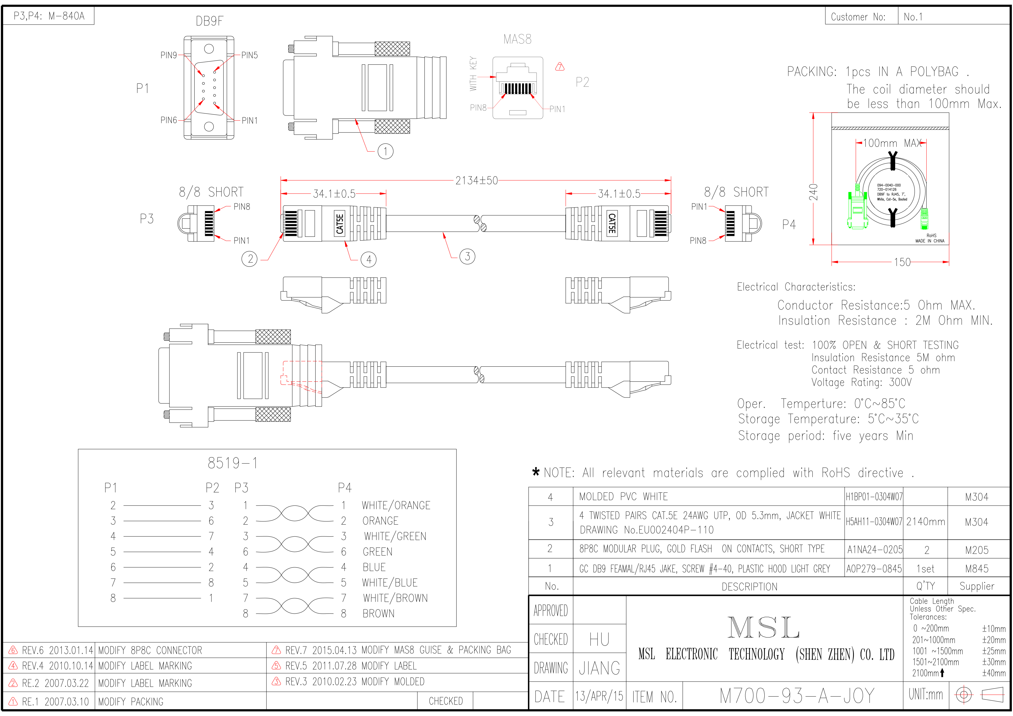 | Wire specification | UTP CAT.5e #24 4PR OD5.3 (EU002404P-110) |
