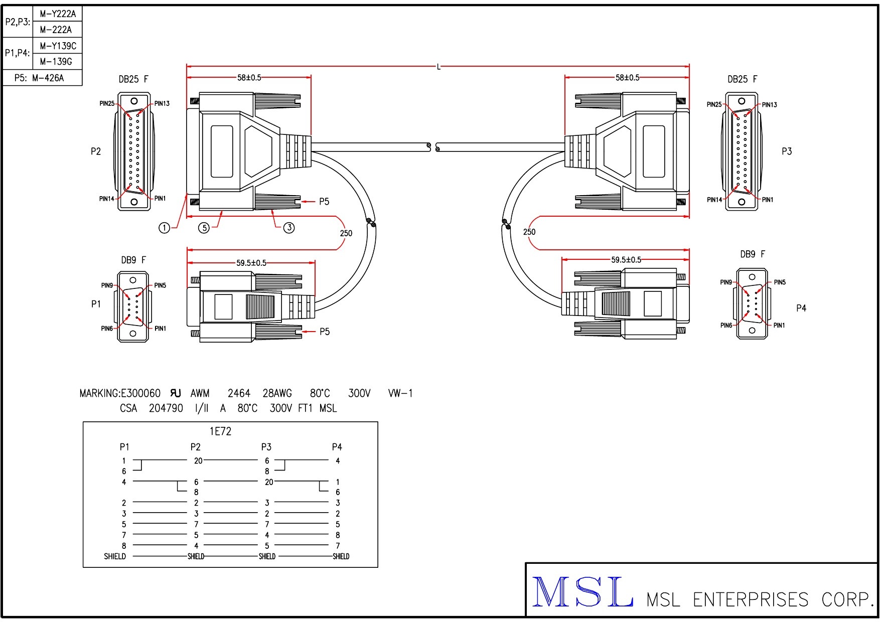 | Wire specification | UL2464 #28 7C+AE OD5.0 ( EMAL2807C-142) |