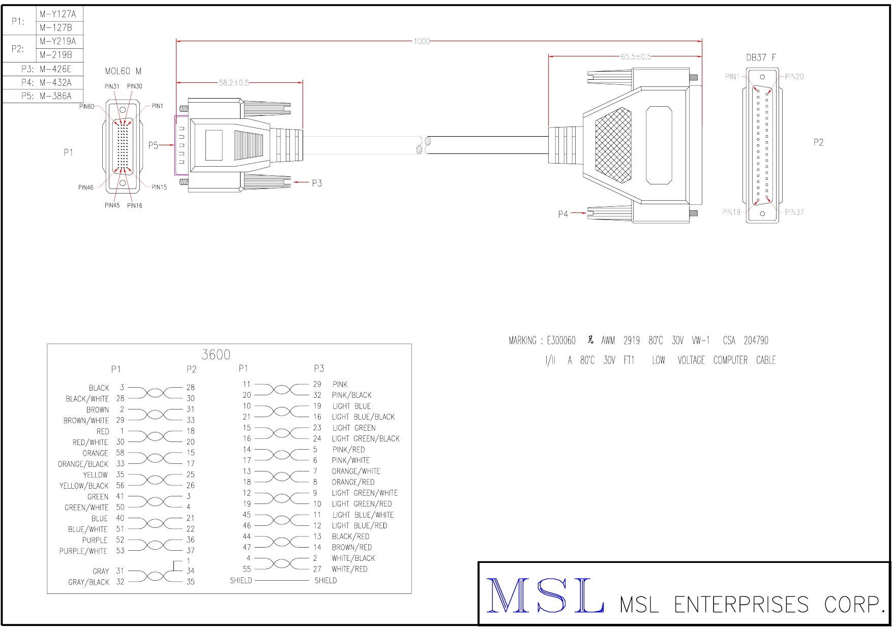 | Wire specification | UL2919 #28 18PR+AE OD7.5 (EAAB2818P-660) |
