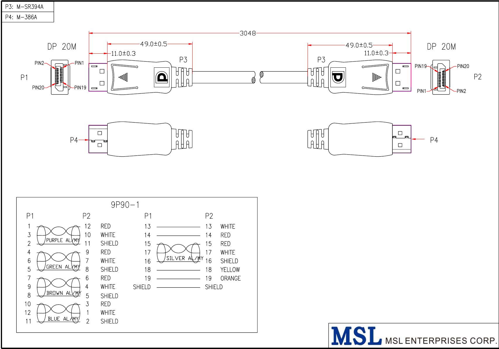 | Wire specification | DP1.4 UL20276 #28(5P+4C)+CCS OD7.3 AMA/45% BLACK EAAB2805P2804C-1382 |