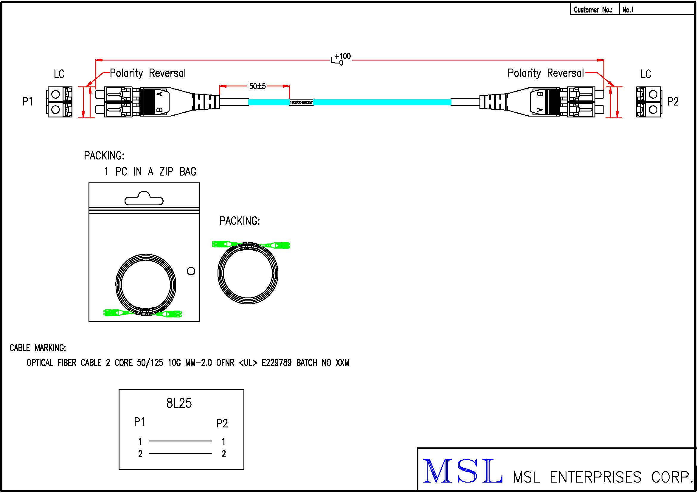 | Wire specification | MM DX OM3 10G 50/125 OD2.0mm single tube dual core water blue