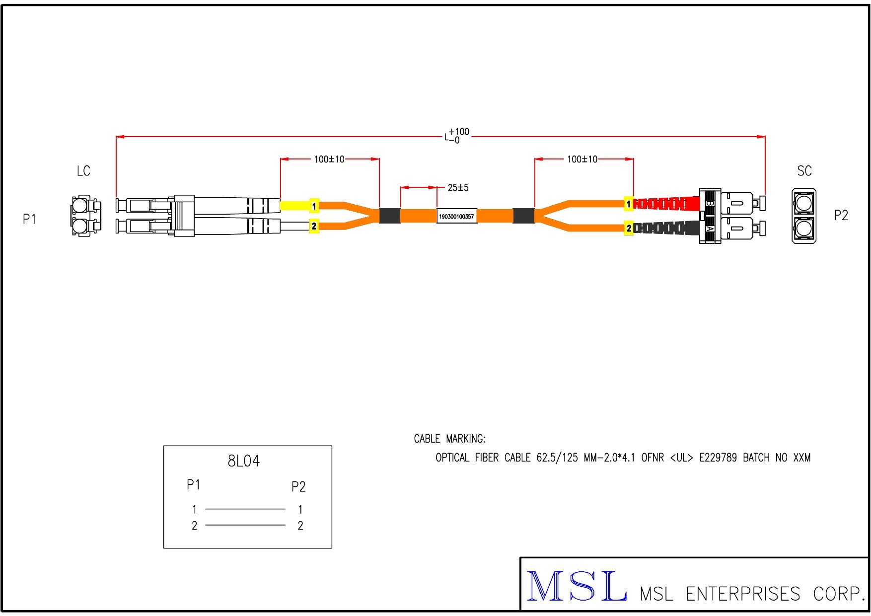 | Wire specification | Multi Mode Duplex OM1 62.5/125 OD2.0*4.1mm OFNR |