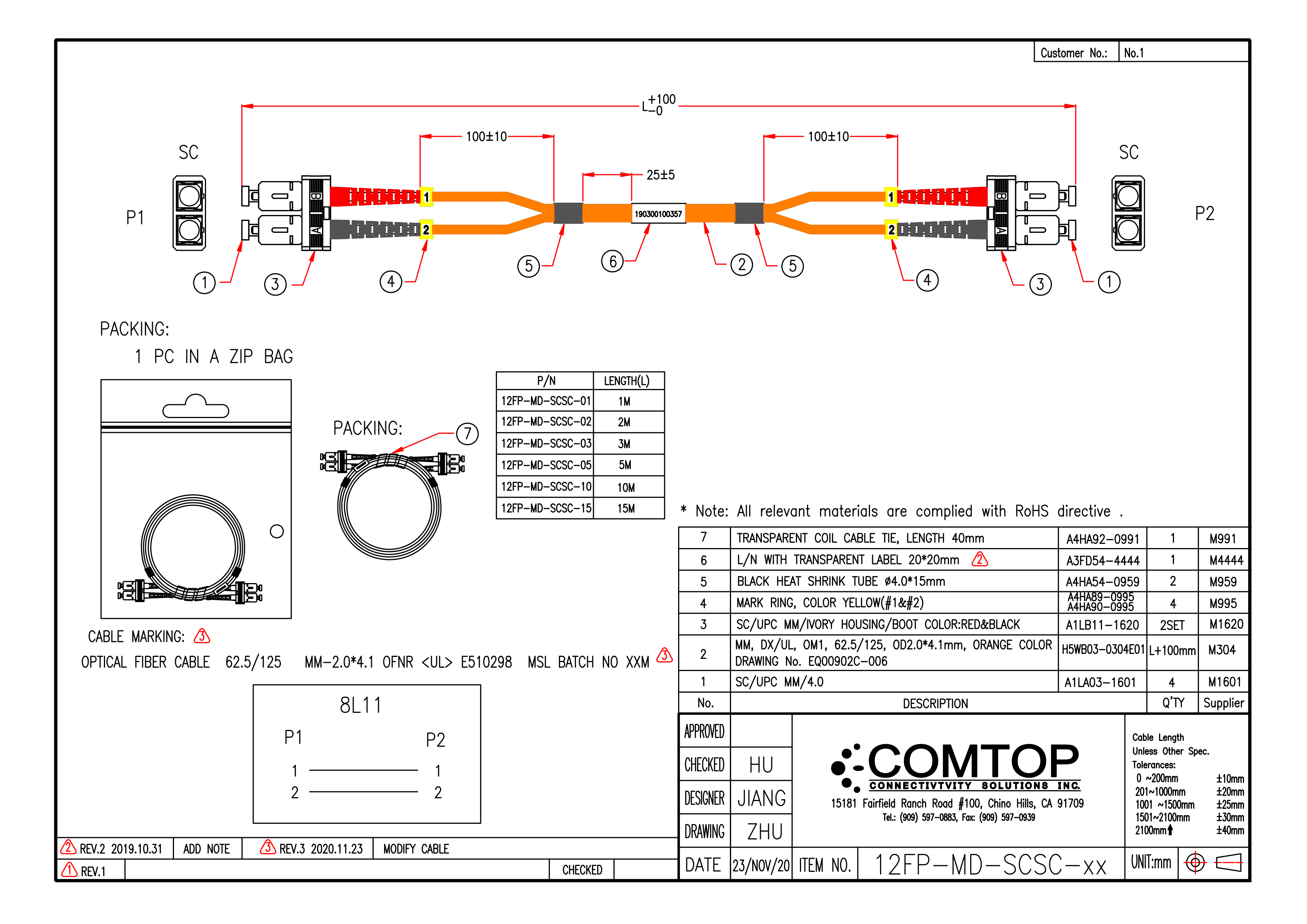 Wire specification Multi Mode Duplex OM1 62.5/125 OD2.0*4.1mm OFNR