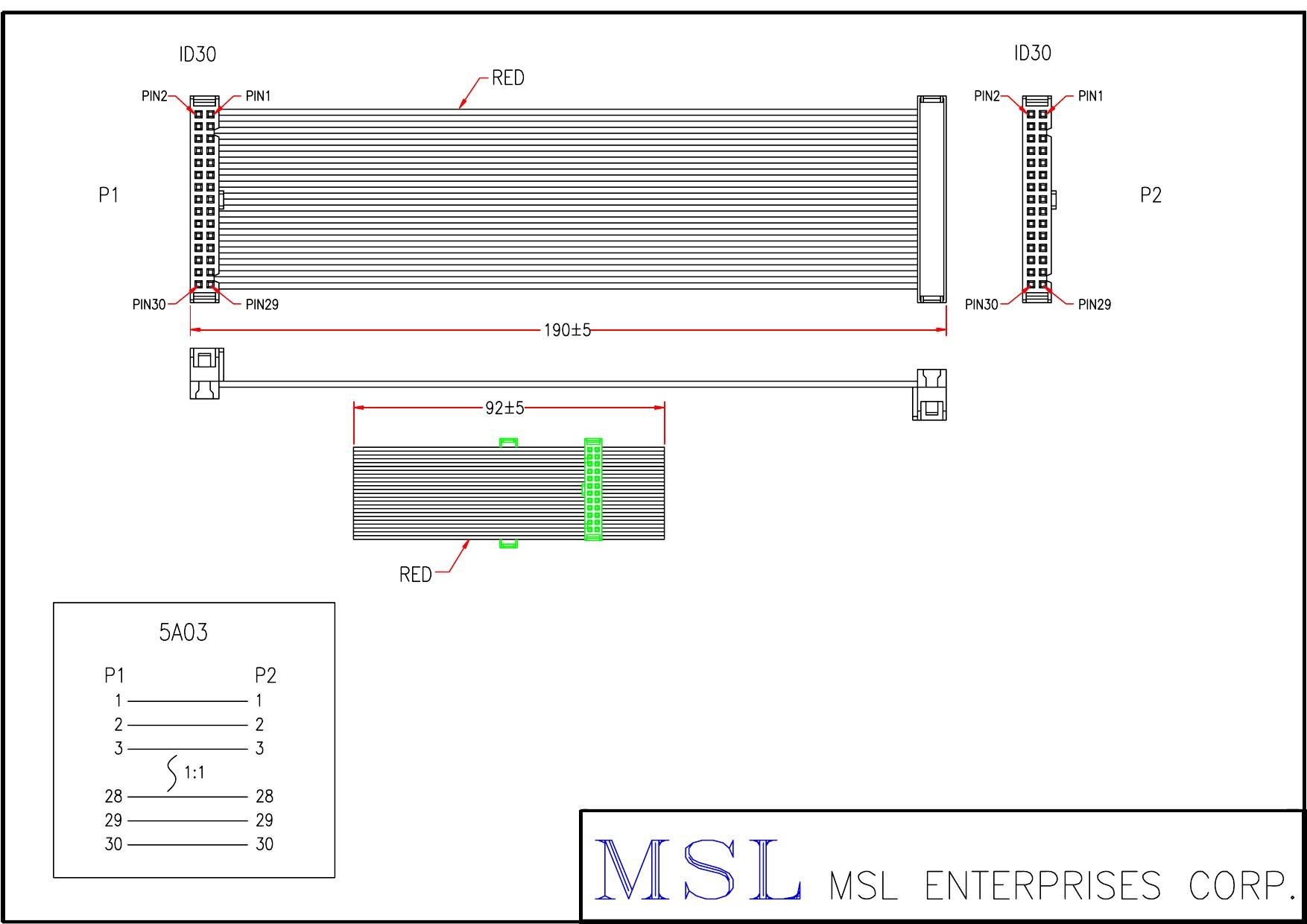 | Wire specification | UL2651 #28 30C PH:1.27 |