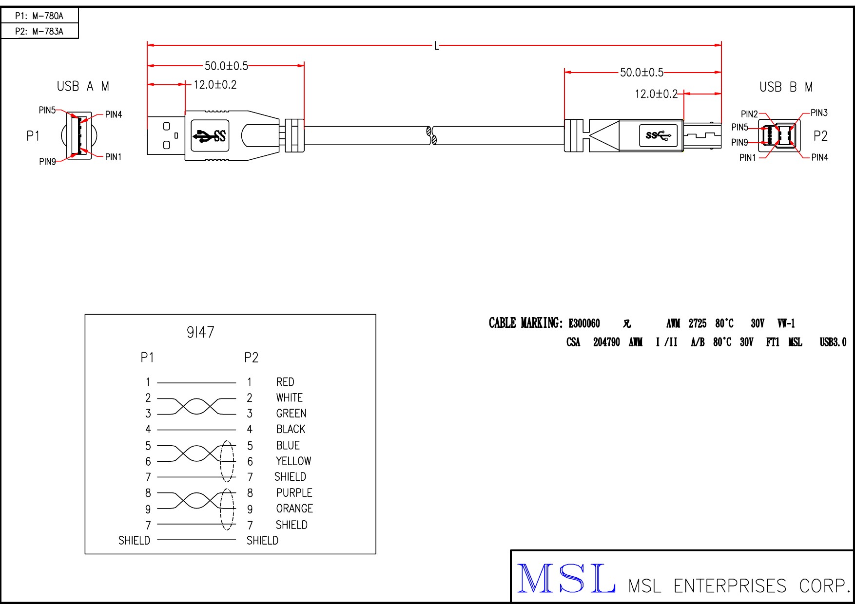 | Wire specification | USB3.0 UL2725 #28+#28+#24 1P+2P+2C OD5.8 (EUAB2801P2802P2402C-355) |