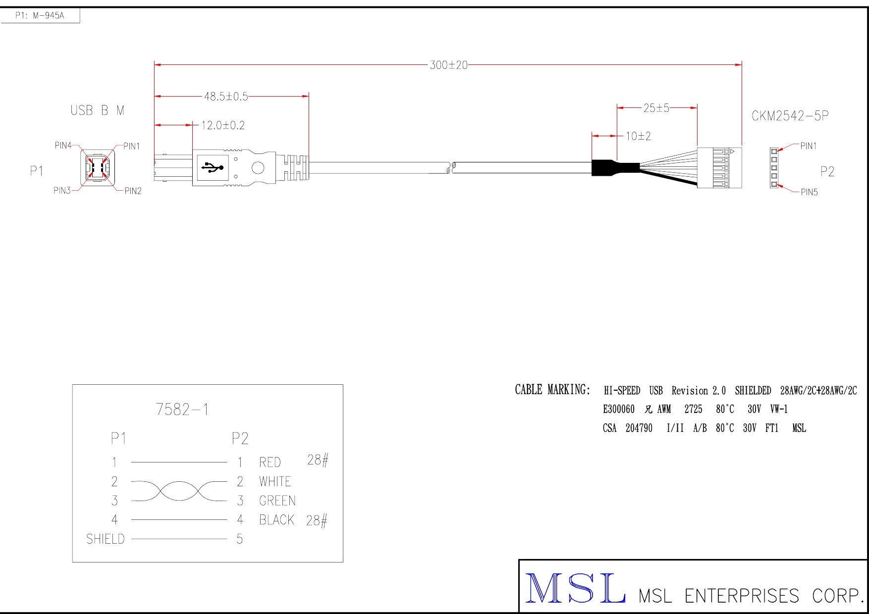 | Wire specification | USB2.0 #28+#28 1P+2C OD3.5 (EUAB2801P2802C-146) |