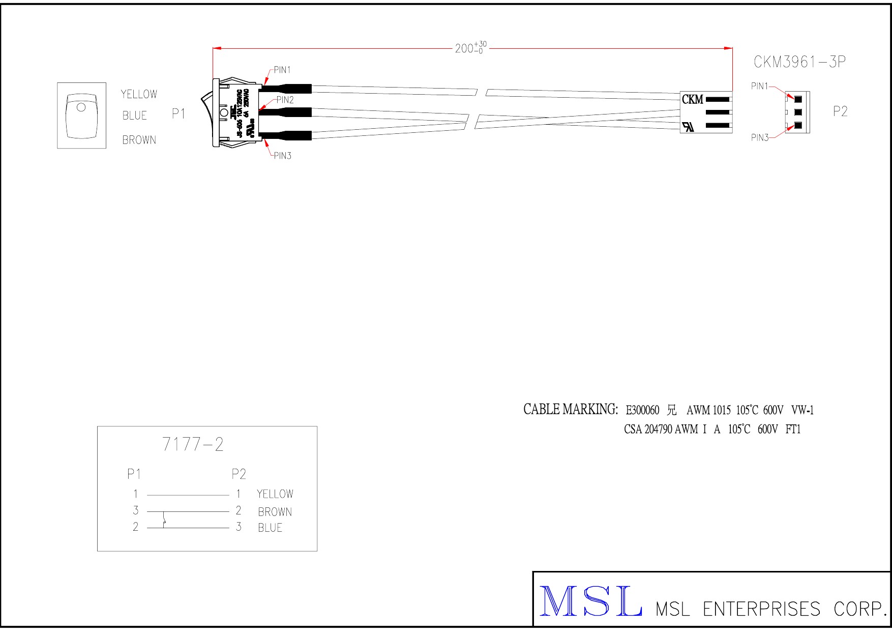 | Wire specification | UL1015 #22 1C OD2.4 (EH002201C-031) |