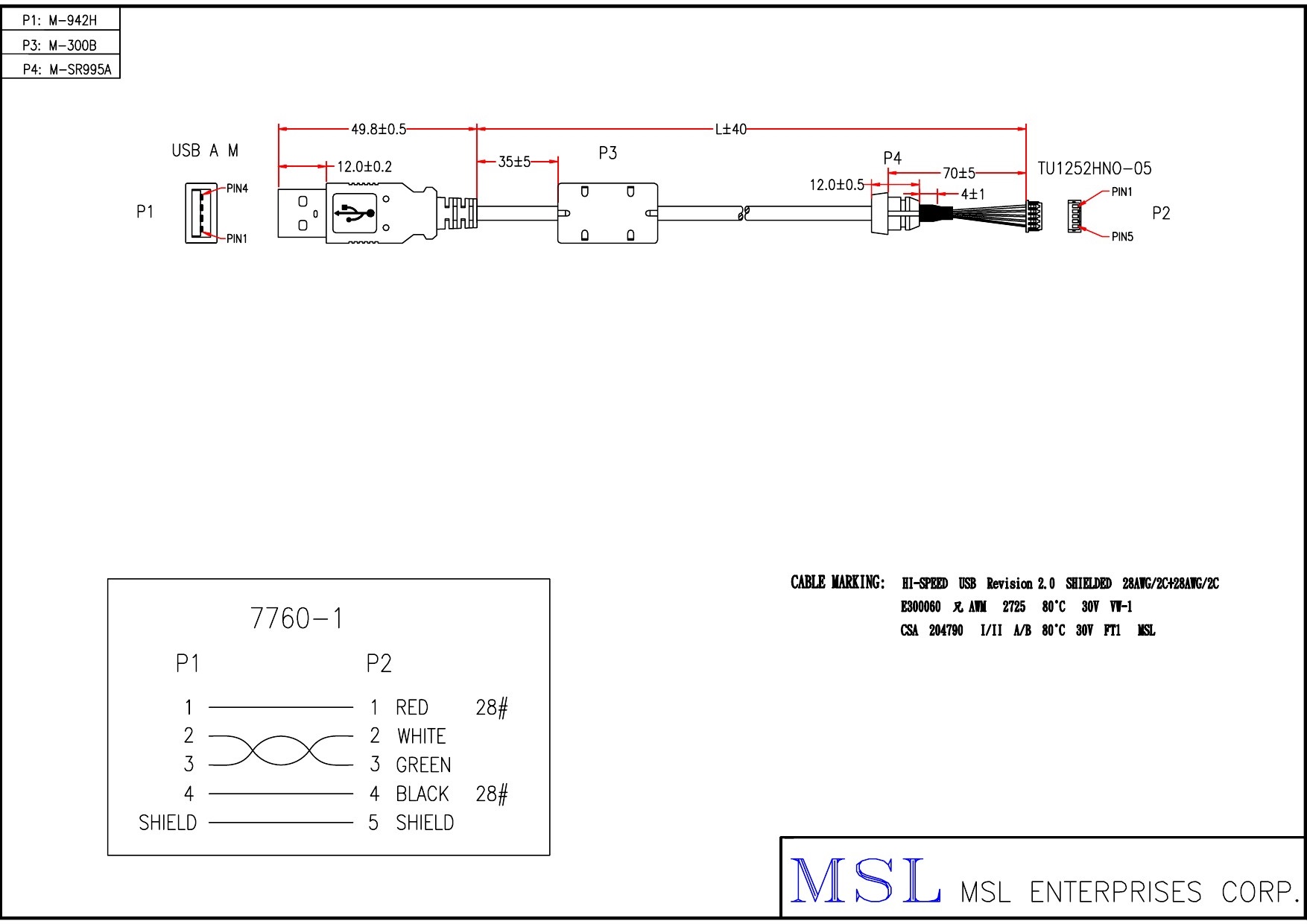 | Wire specification | USB2.0 #28+#28 1P+2C OD3.5 ( EUAB2801P2802C-146) |