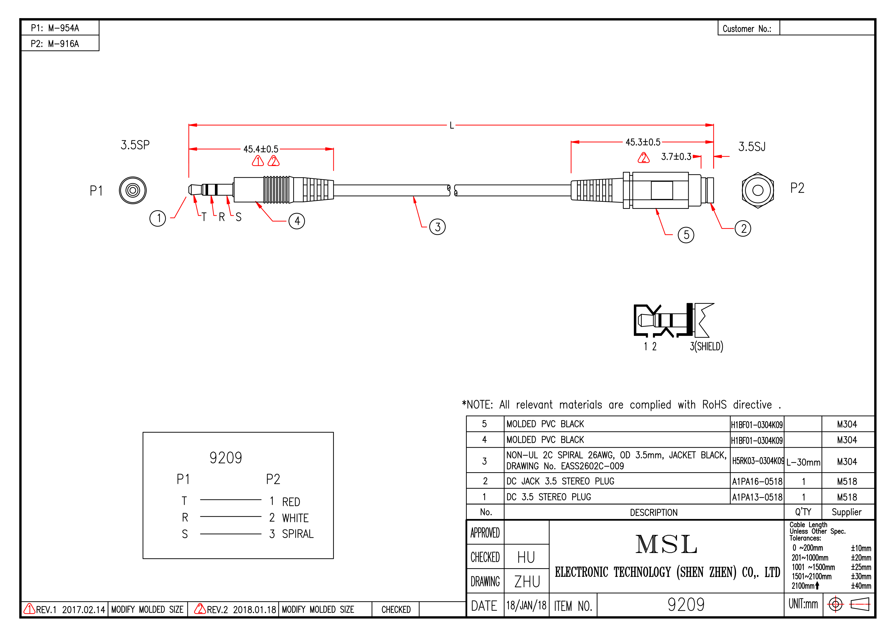 | Wire specification | #28 2CS OD3.5 (EASS2802C-031) |