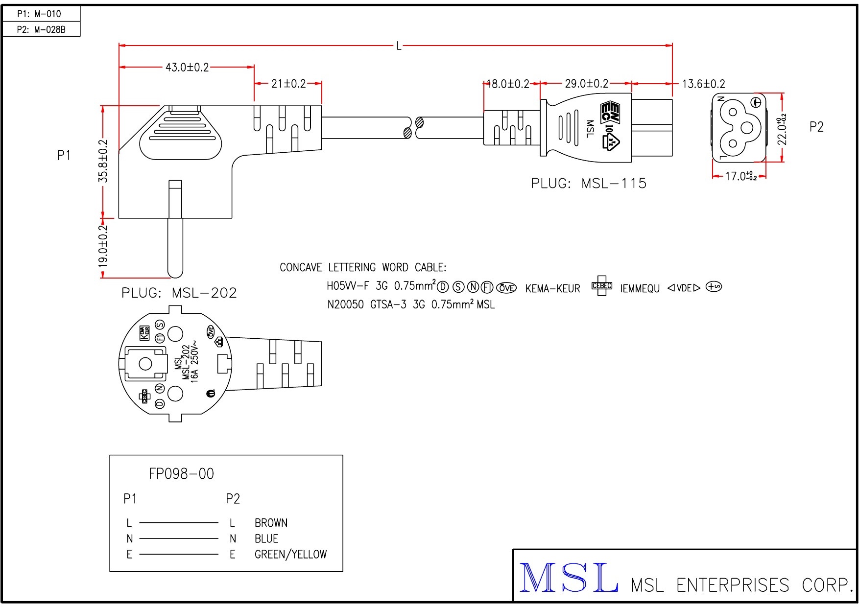 | Wire specification | H05VV-F 3G 0.75mm2 GTSA-3 OD6.8 (EPH5V0107503C-042) |