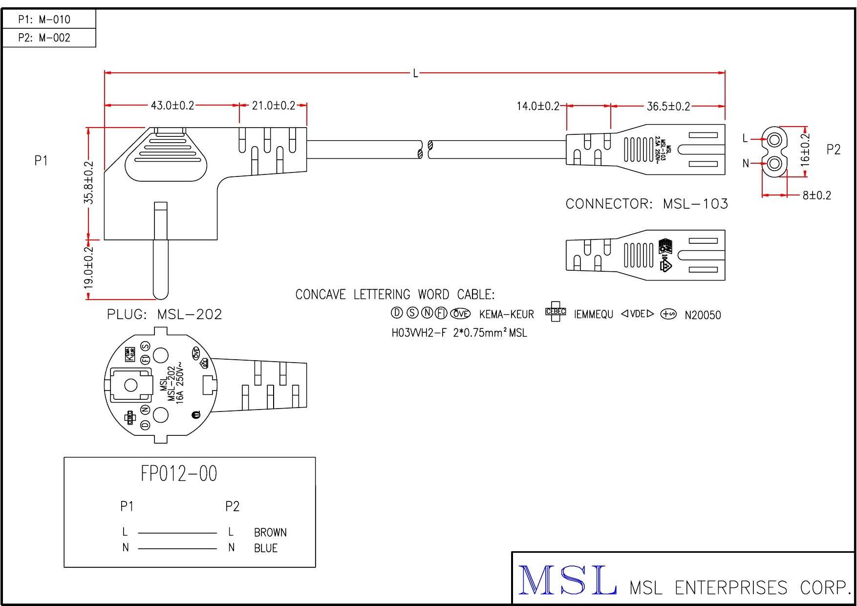 | Wire specification | H03VVH2-F 2C 0.75mm2 OD3.5*5.7 (EPH3V0107502C-001 ) |