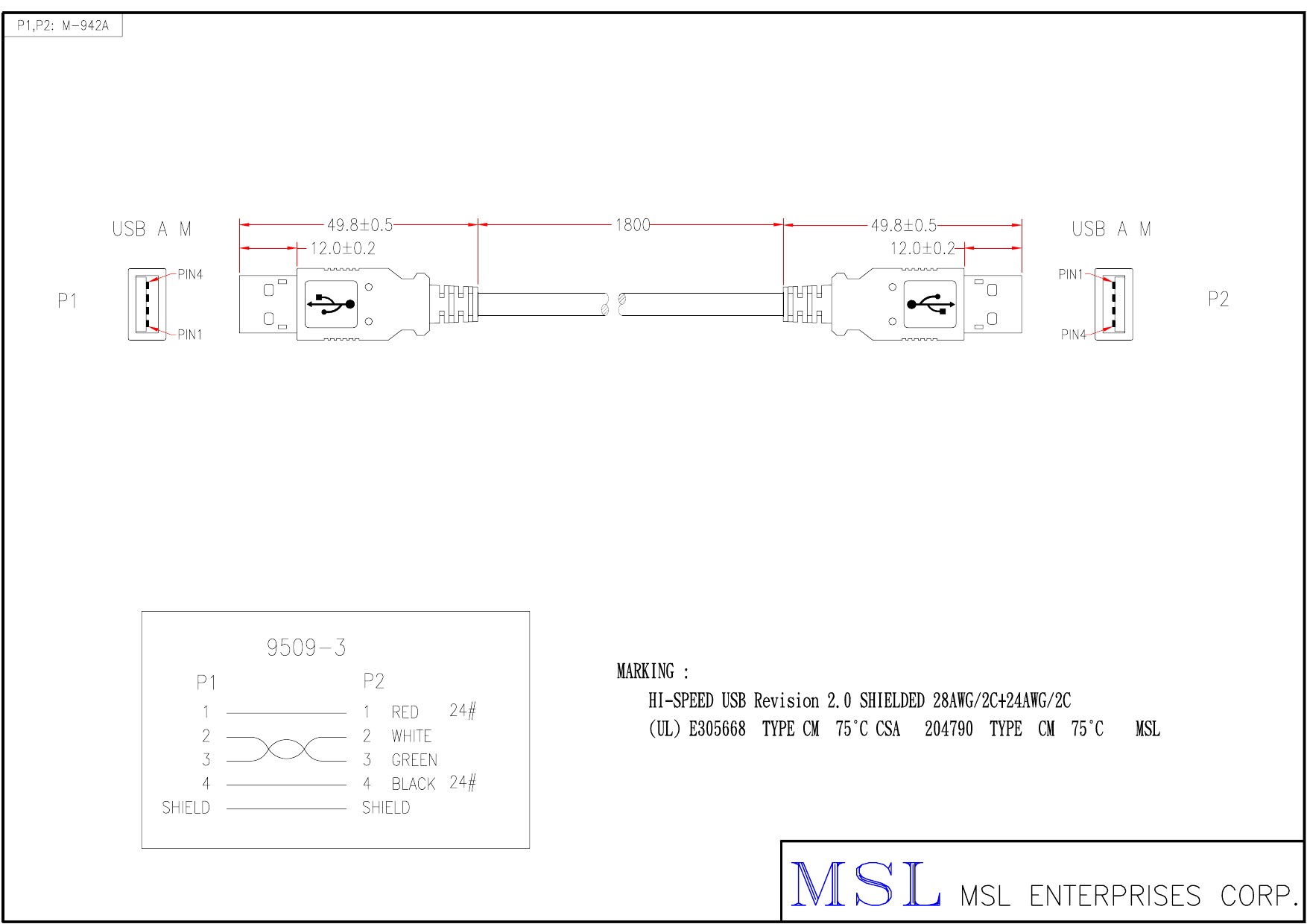 | Wire specification | UL 2725 #24/1P+#24/2C+AEB OD4.5 (EUAB2401P2402C-381) |
