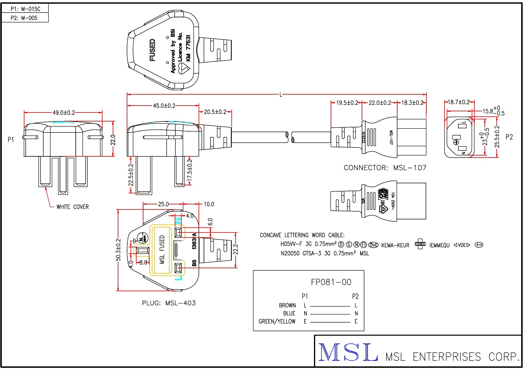| Wire specification | H05VV-F 3G 0.75mm2 GTSA-3 OD6.8 (EPH5V0107503C-042) |