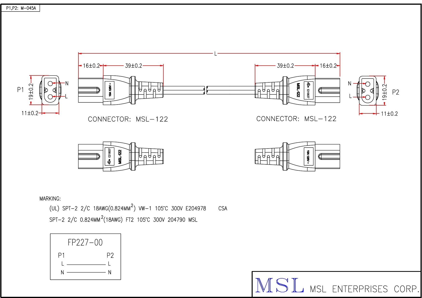 | Wire specification | ULSPT-2 #18 2C OD3.5*6.9 (EPSPT001802C-014) |