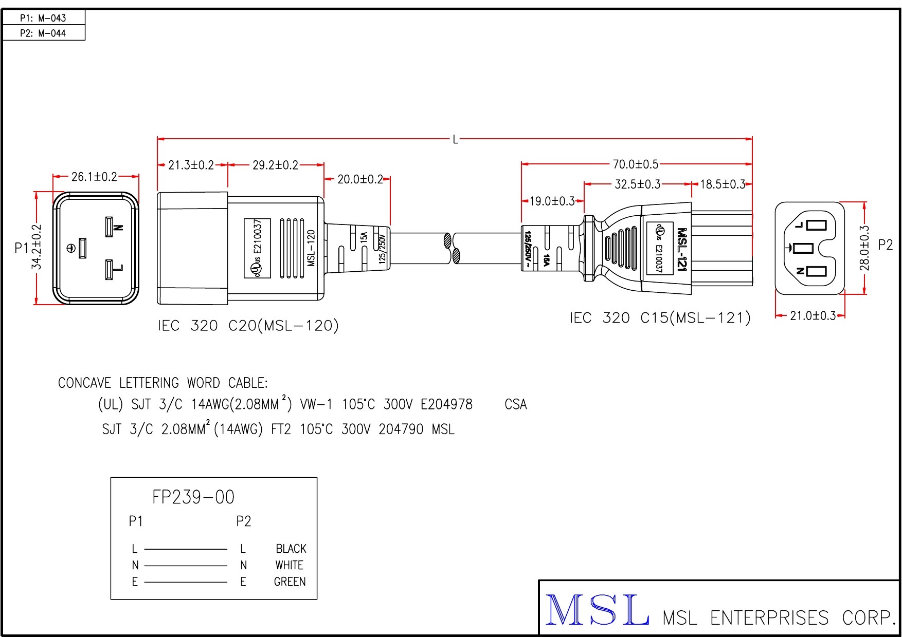 | Wire specification | UL SJT 14AWG*3C OD 9.3mm 105℃ (EPSVT011403C-147) |