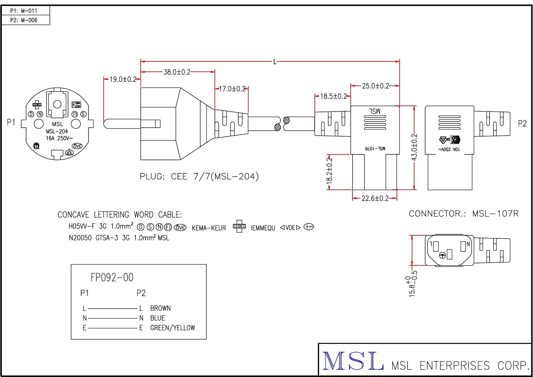 | Wire specification | H05VV-F 3G 1.0mm2 GTSA-3 OD:7.1 (EPH5V011003C-005) |