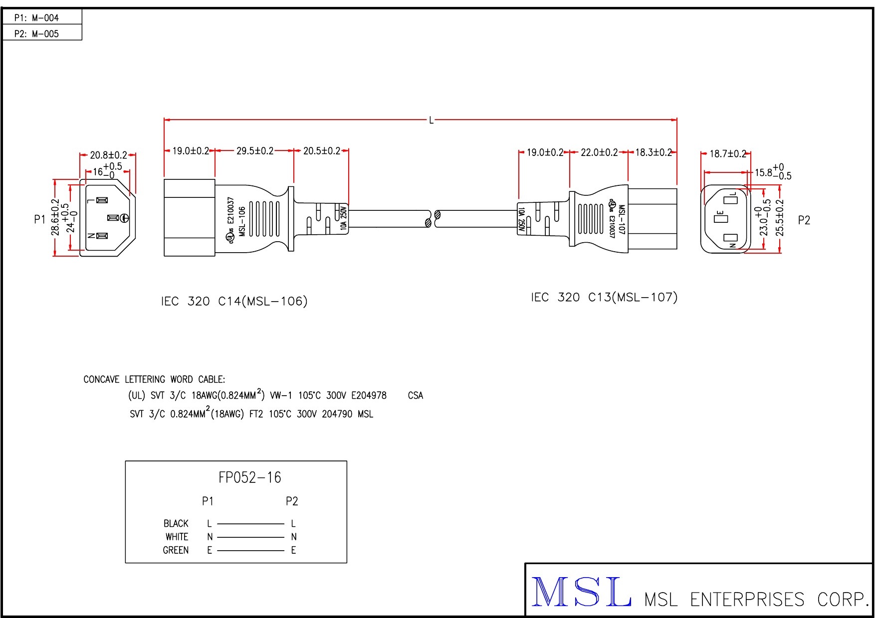 | Wire specification | UL SVT #18 3C OD6.3 (EPSVT011803C-106) |