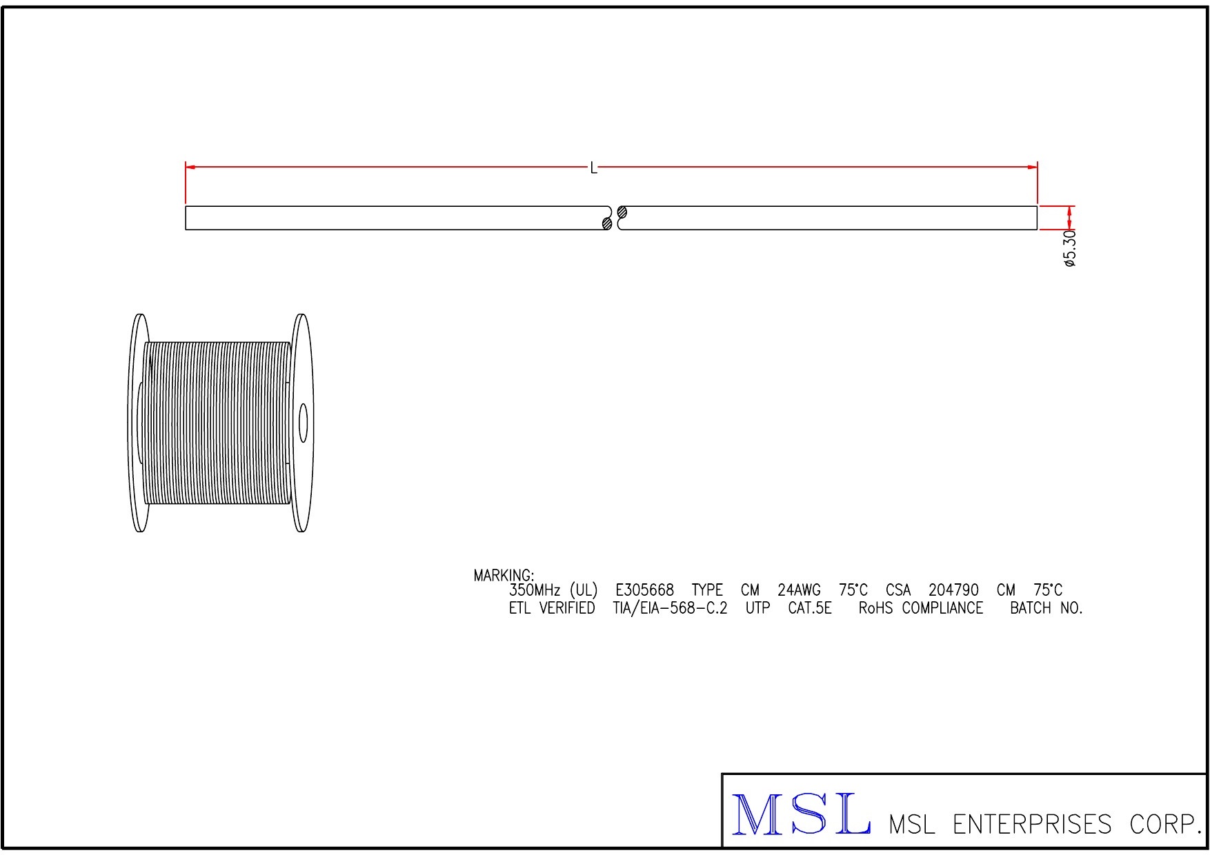 | Wire specification | UTP CAT.5e #24 4PR OD5.3 (EU002404P-174) |