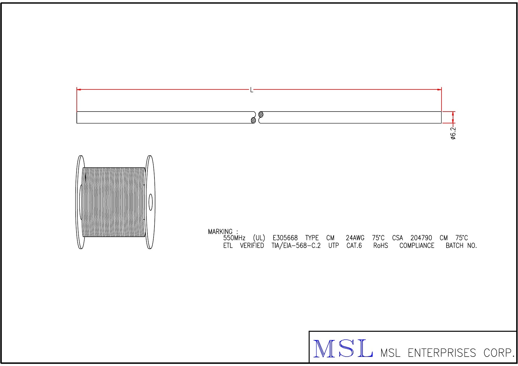 | Wire specification | UTP CAT.6 #24 4PR OD6.2 (CROSS) (EU002404P-825) |