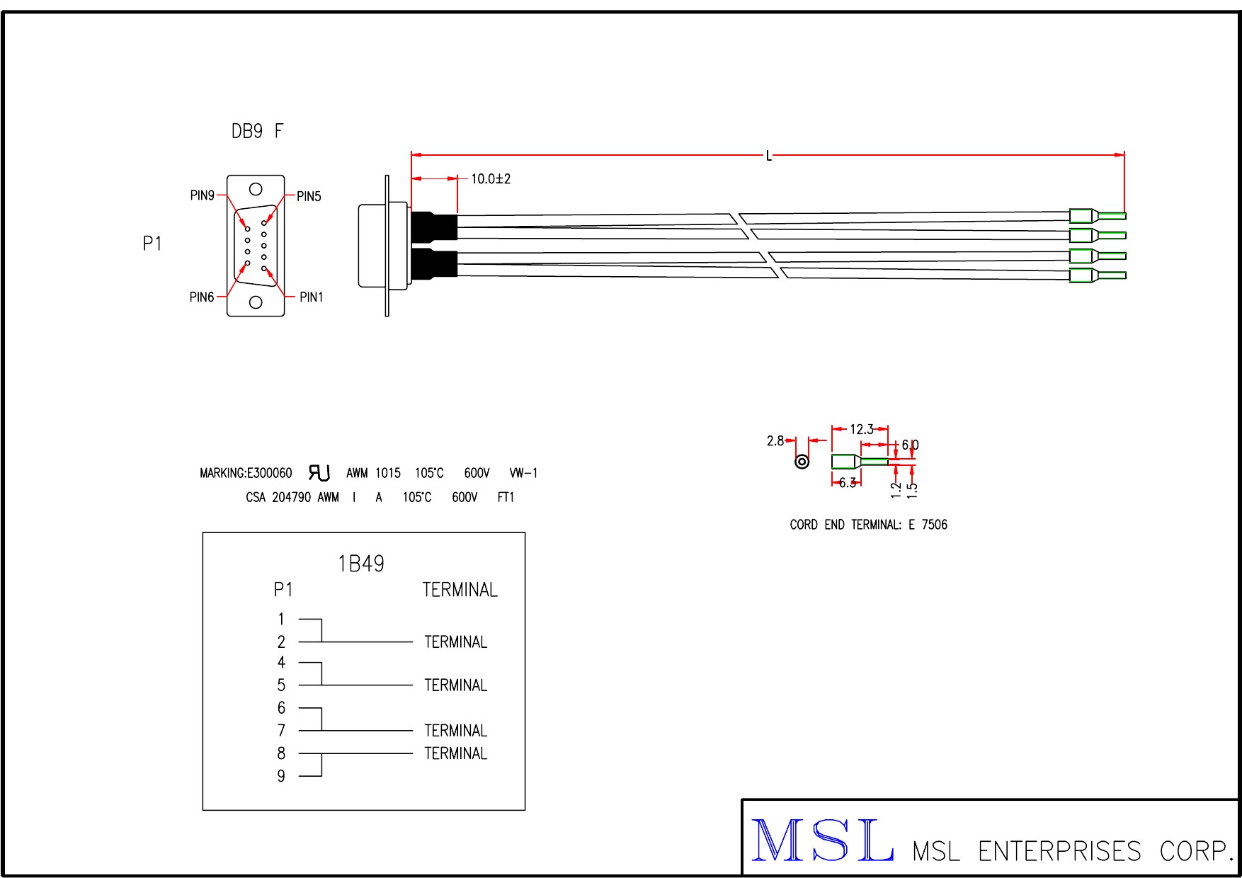 | Wire specification | UL1015 #20 1C OD2.6 (EH002001C-030) |