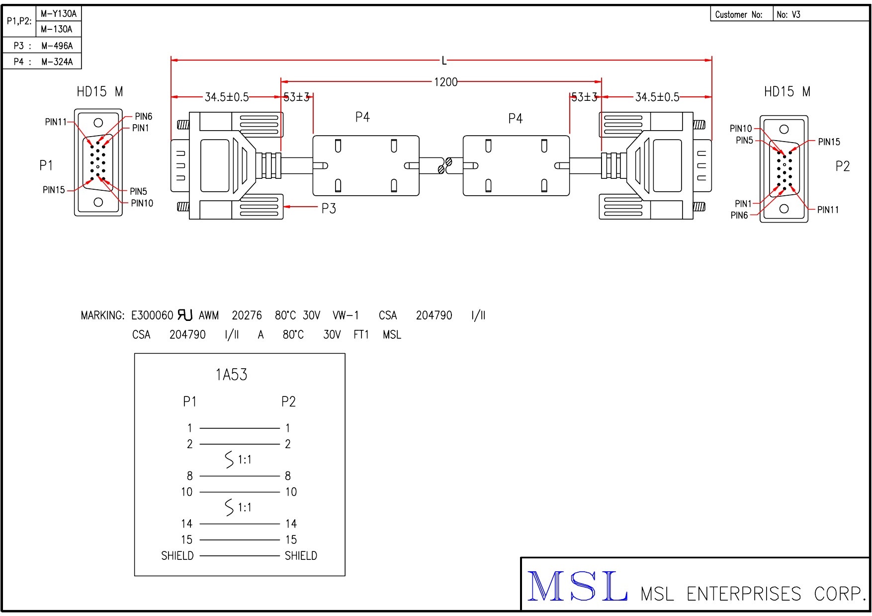 | Wire specification | UL20276 #28 14C+AE OD5.0 (EAAL2814C-172) |