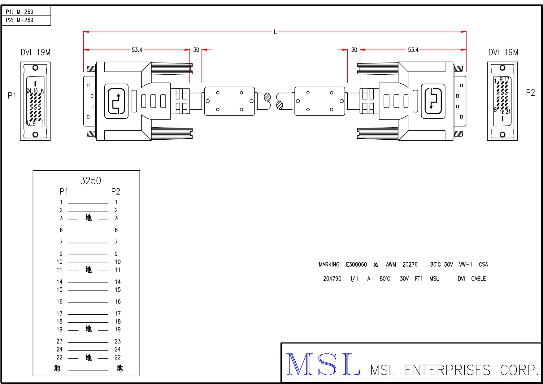 | Wire specification | UL20276 #28 DVI-D(Single) 4P+1P+3C OD7.3 (EAAB2804P2801P2803C-289) |