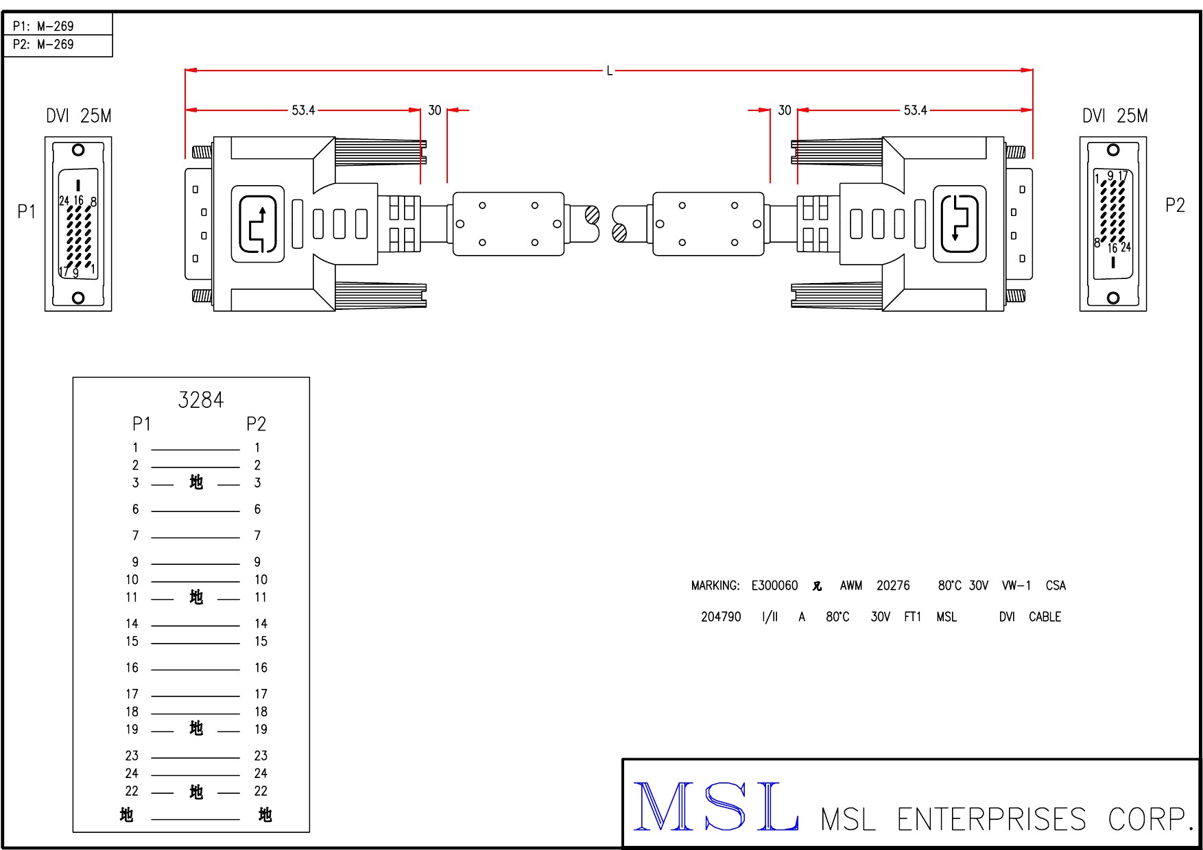 | Wire specification | UL20276 #28 DVI-D(Single) 4P+1P+3C OD7.3 (EAAB2804P2801P2803C-286) |
