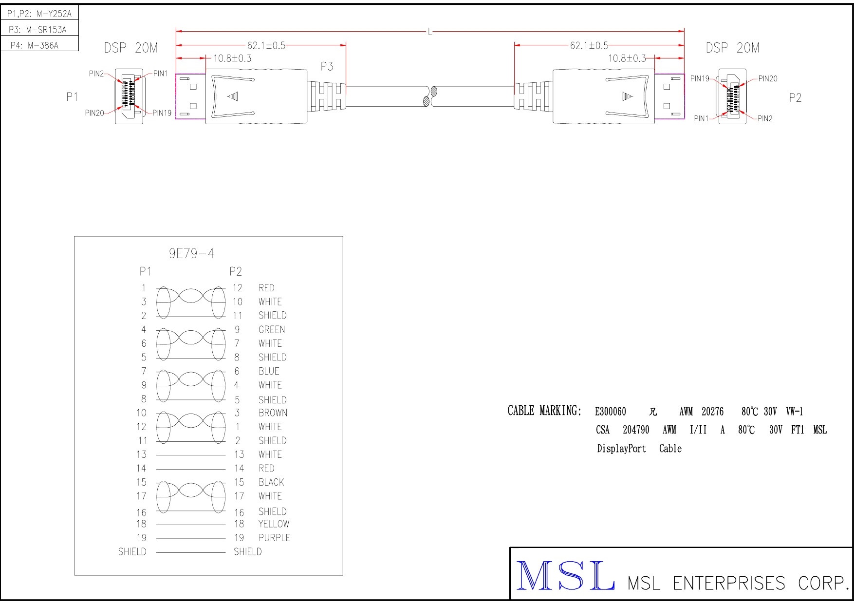 | Wire specification | UL20276 #28+#28 DIS (5P+4C+AEB) OD7.3 (EAAB2805P2804C-573) |