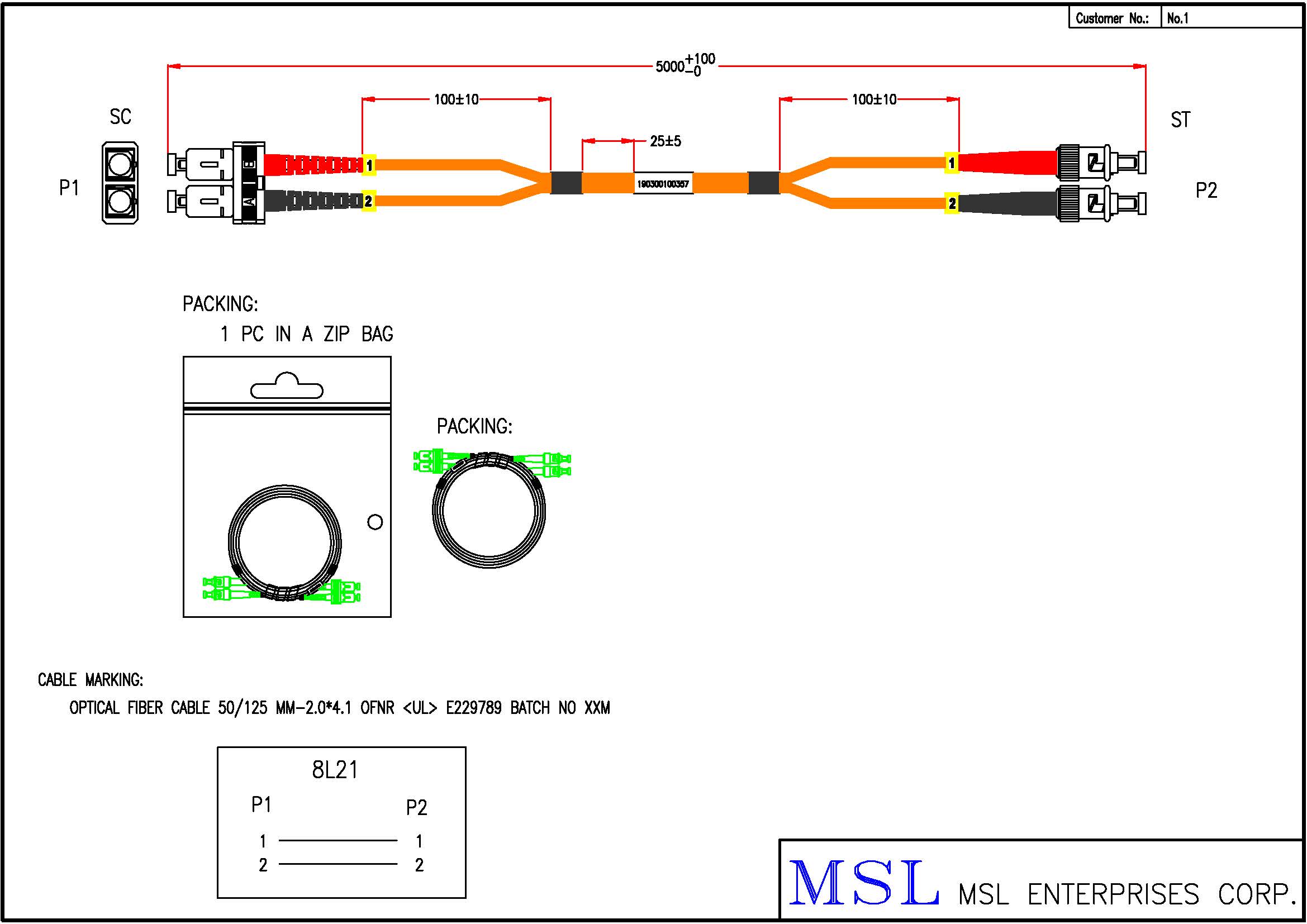 | Wire specification | Multi Mode Duplex OM2 50/125 OD2.0*4.1mm OFNR |