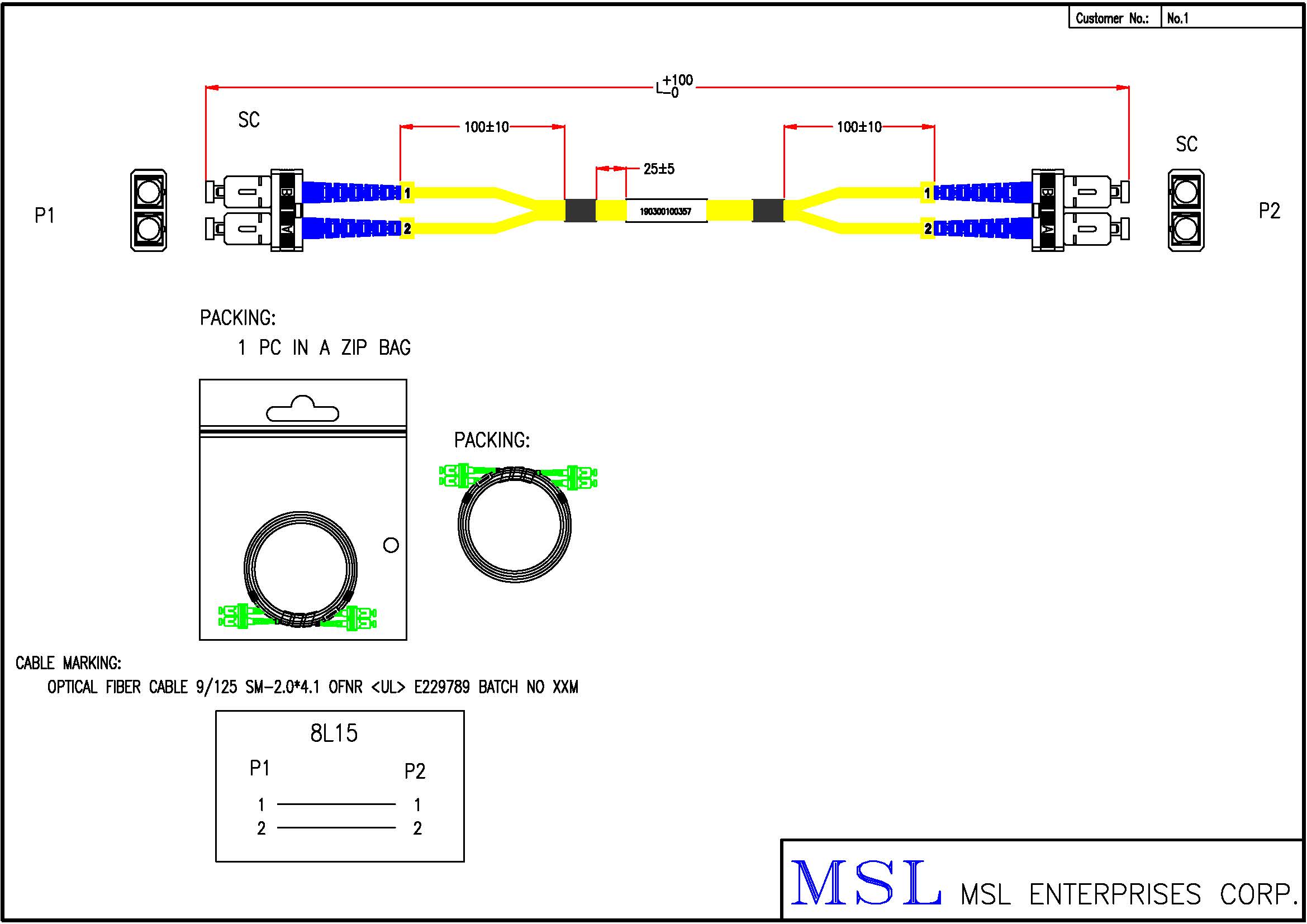 | Wire specification | Single Mode Duplex G657A1 9/125 OD2.0*4.1mm OFNR |