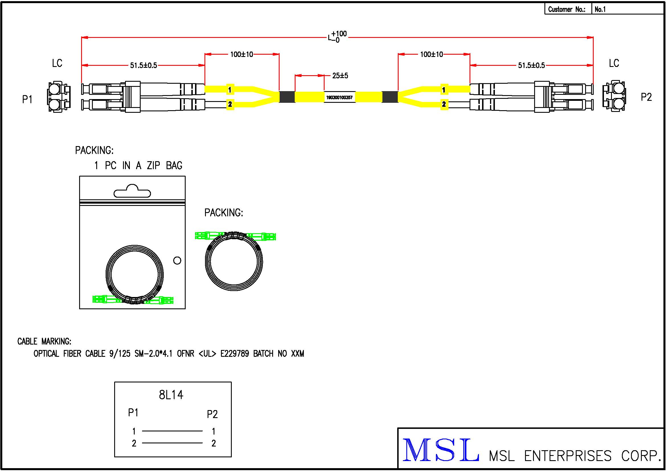 | Wire specification | Single Mode Duplex G657A1 9/125 OD2.0*4.1mm OFNR |