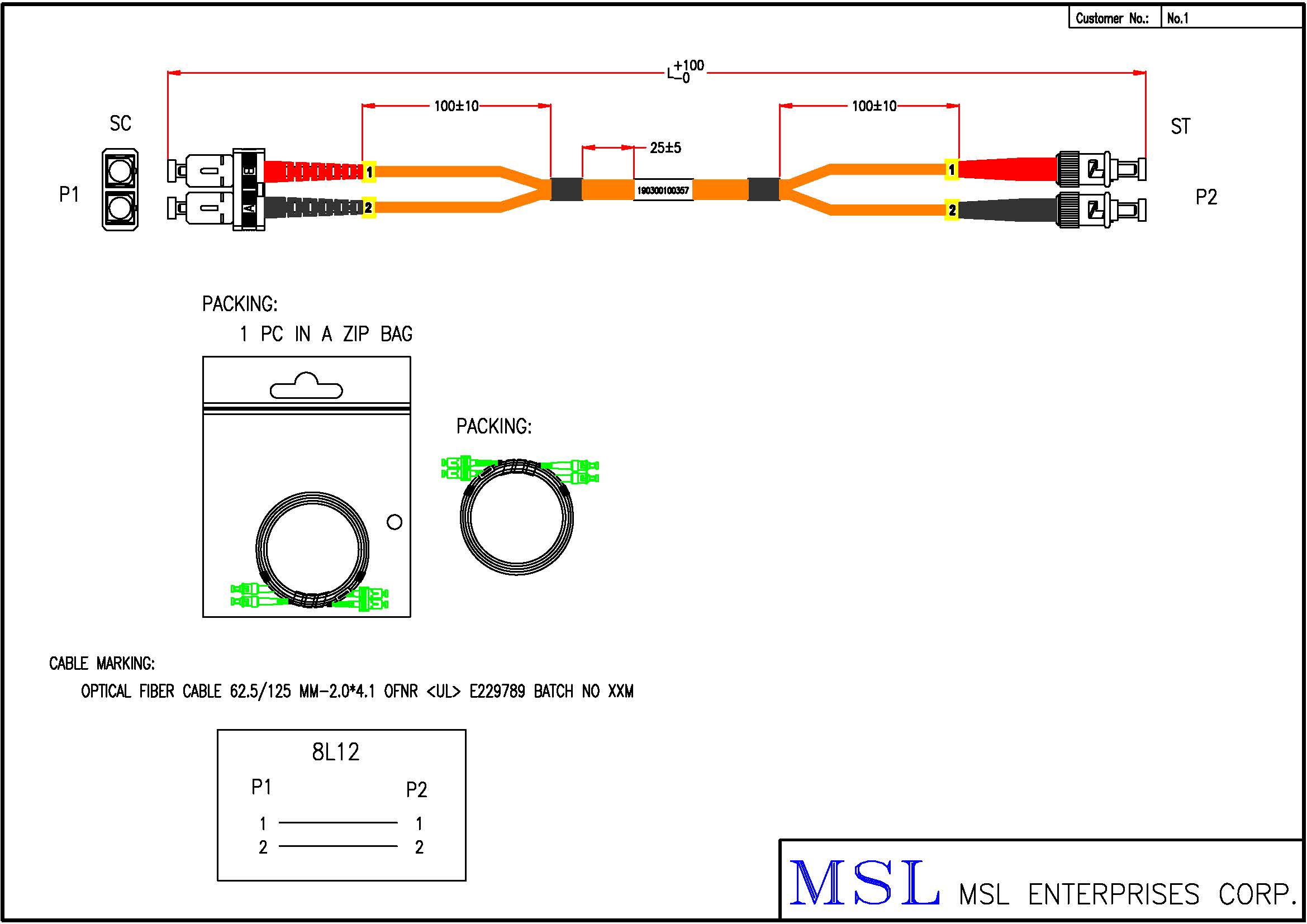 | Wire specification | Multi Mode Duplex OM1 62.5/125 OD2.0*4.1mm OFNR |