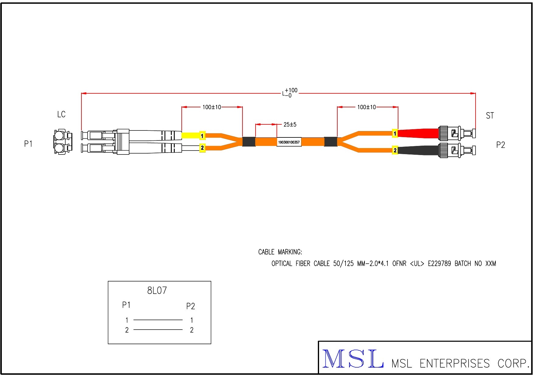 | Wire specification | Multi Mode Duplex OM2 50/125 OD2.0*4.1mm OFNR |