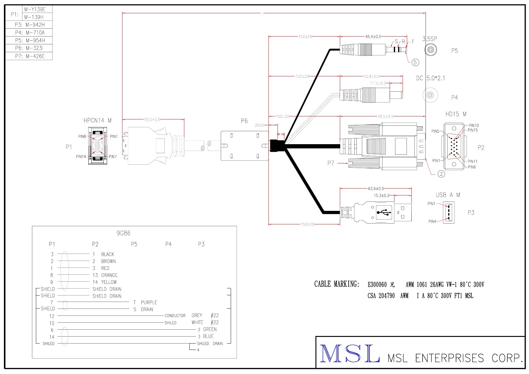 HPCN14M - HD15M - USBAM- DC5.0*2.1 - 3.5SP