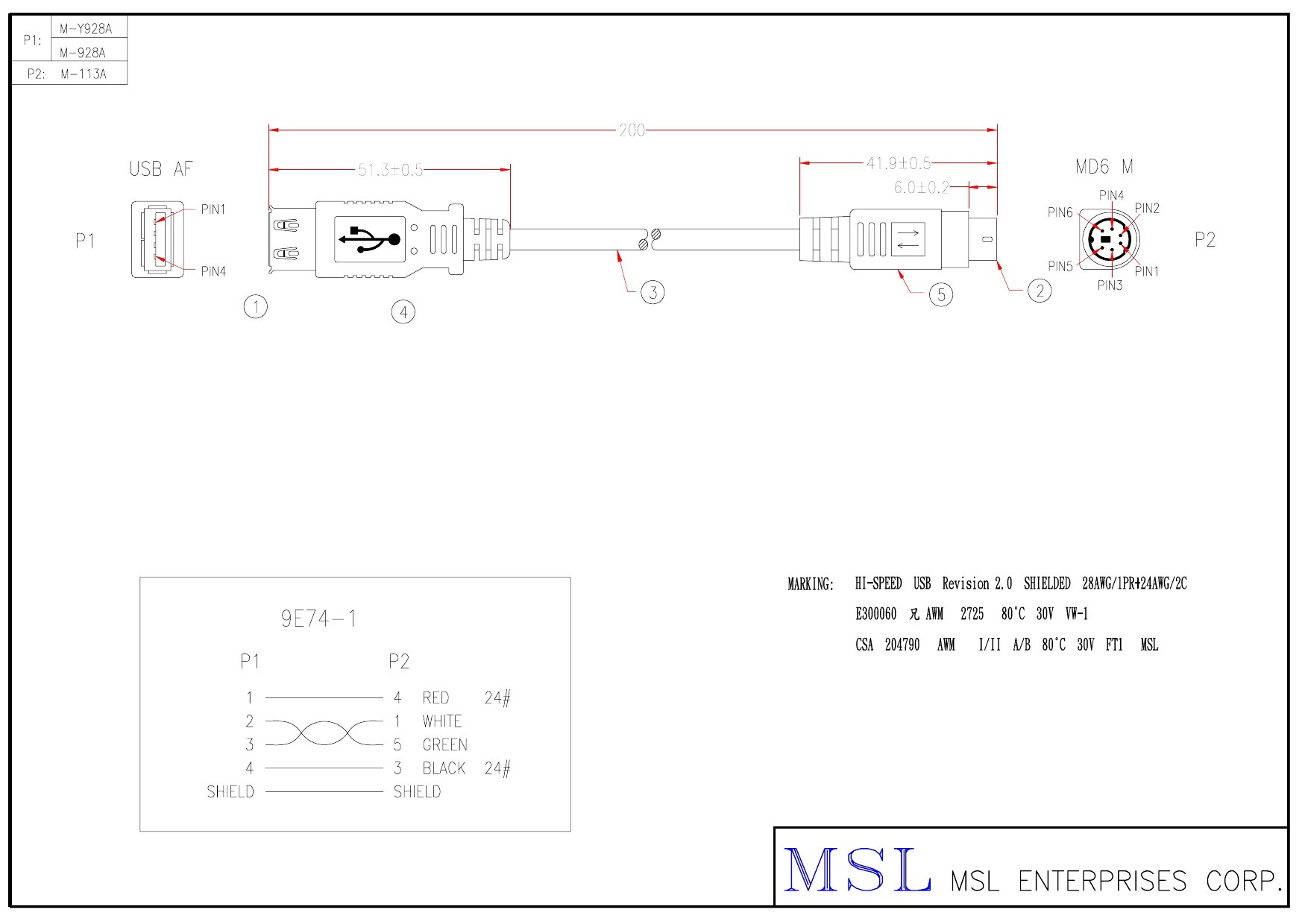 | Wire specification | USB2.0 #28+#24 1P+2C OD4.5 (EUAB2801P2402C-139 ) |