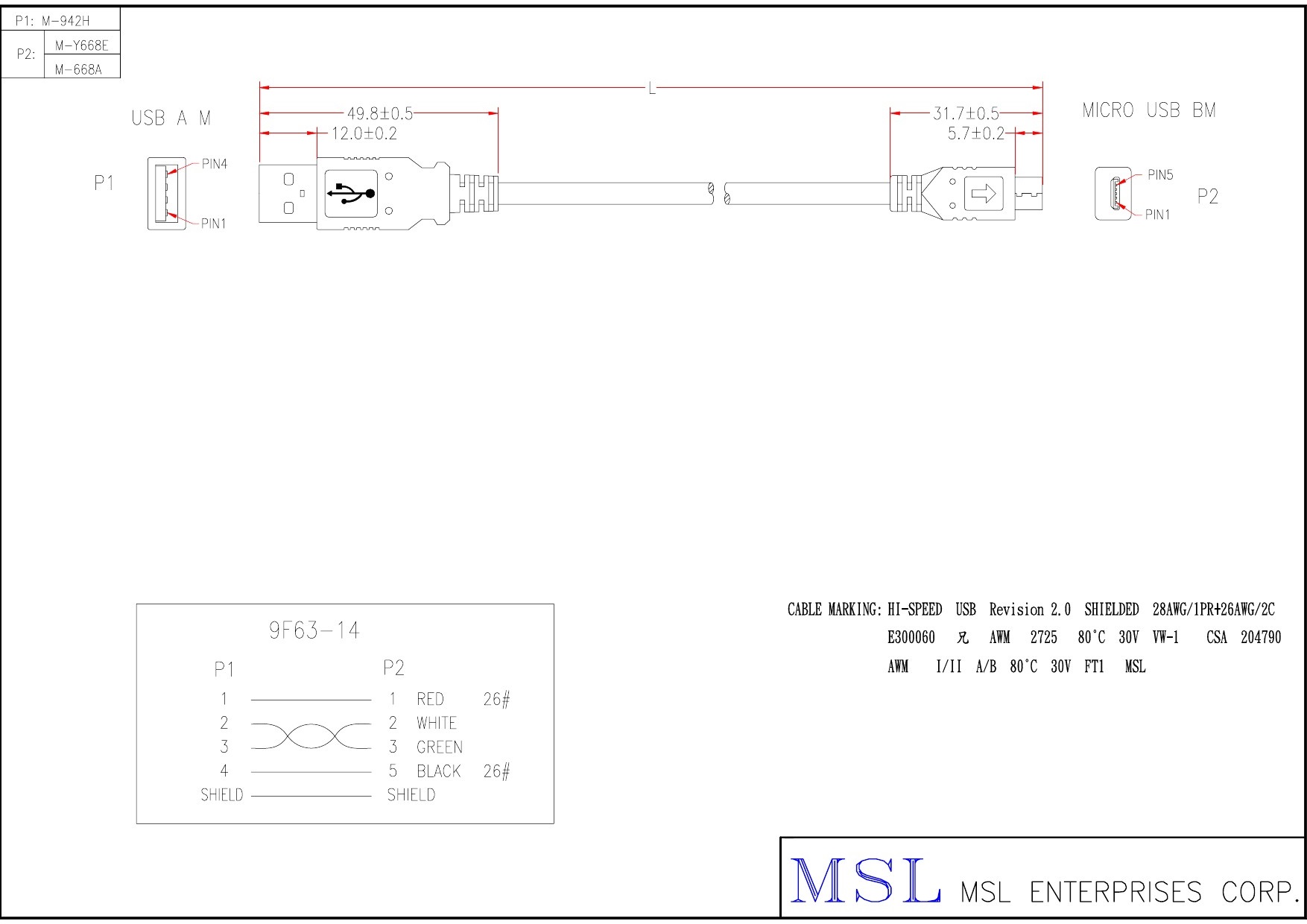 | Wire specification | USB2.0 #28+#26 1P+2C OD4.5 ( EUAB2801P2602C-190) |