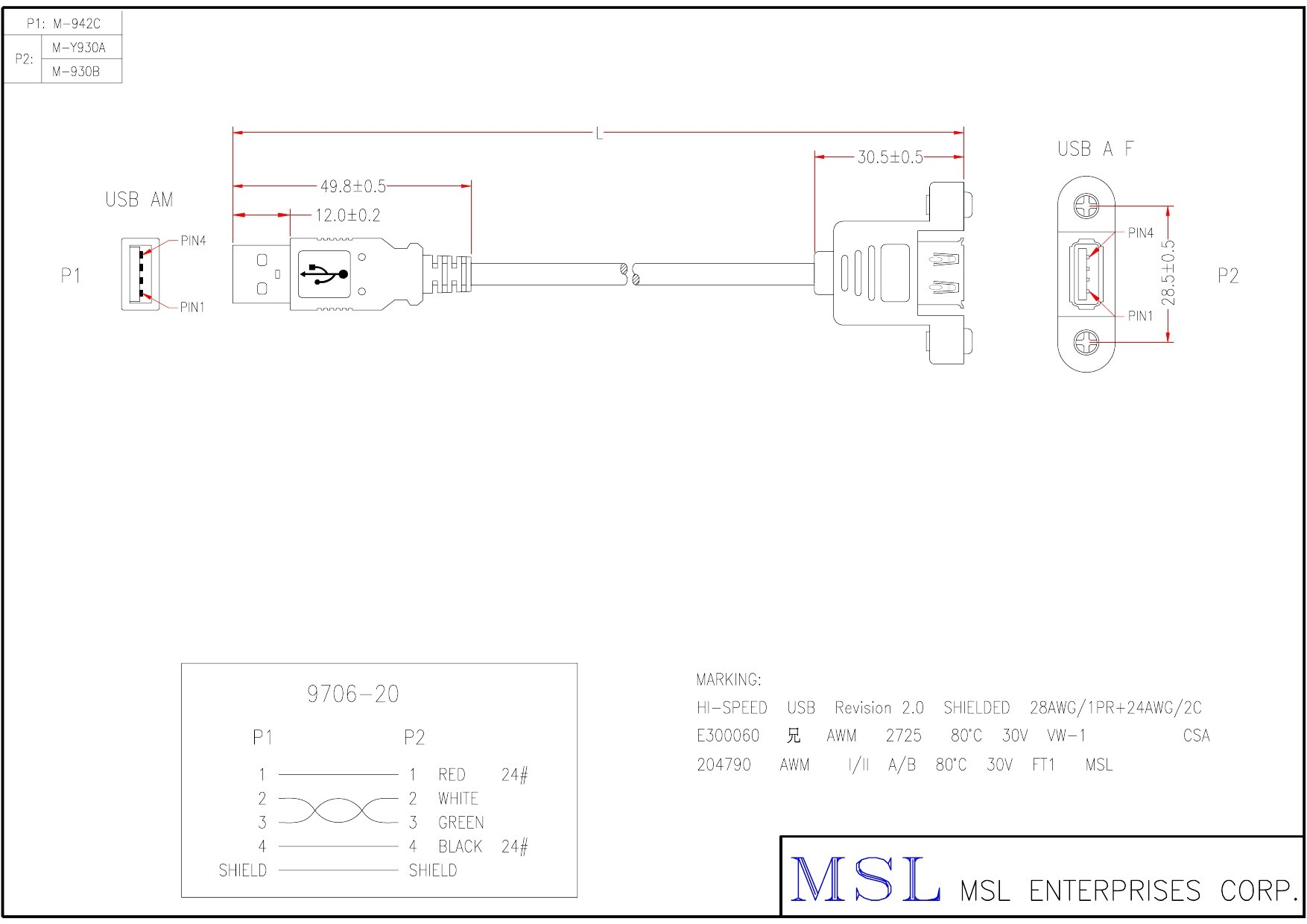 | Wire specification | USB2.0 #28+#24 1P+2C OD4.5 (EUAB2801P2402C-139) |