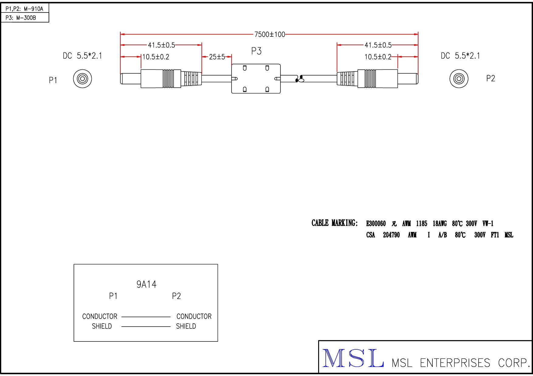 | Wire specification | UL1185 #18 1CS OD3.5 (ECSS1801T-030) |