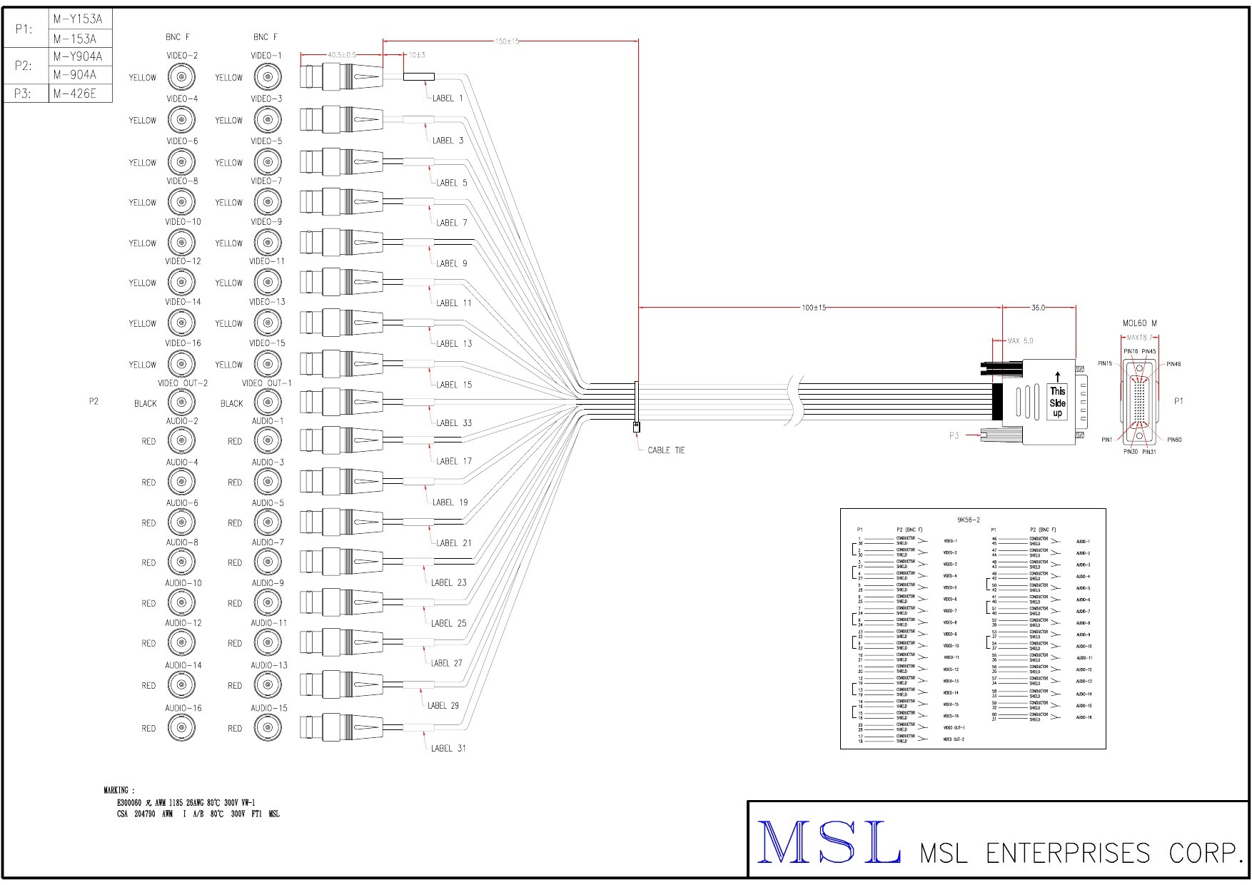 | Wire specification | UL1185 #26 1CS OD2.5 (ECSS2601T-057) |